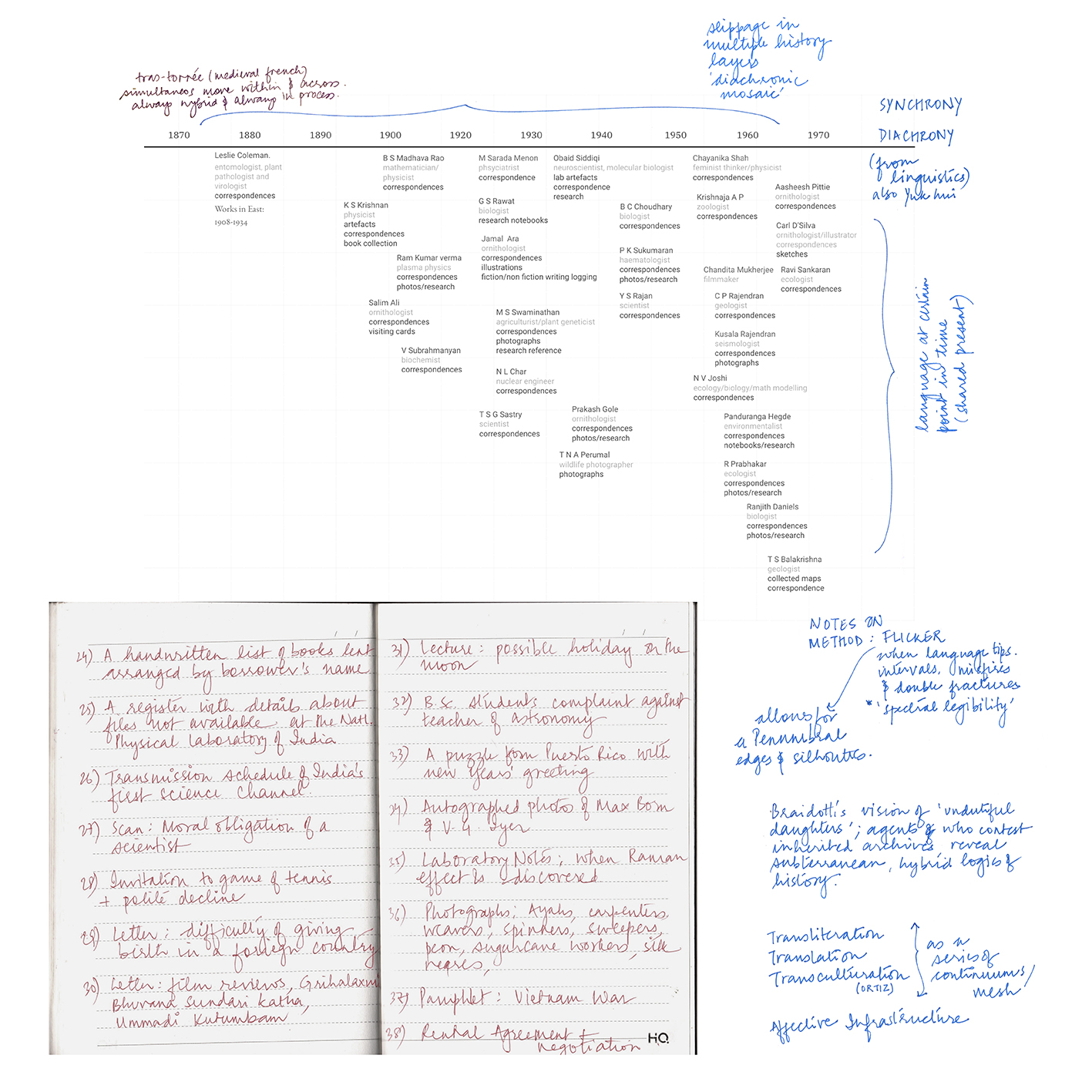 This Foundation Project implemented by IFA will facilitate research towards creation of a performative script and a sound based installation based on the letters of correspondences across various collections at the Archives at National Centre for Biological Sciences (NCBS). This project is a collaboration with the Archives at NCBS, Bangalore, Karnataka. The Archives at NCBS is a public centre for the history of science in contemporary India. Over 350,000 processed objects across 50+ collections are available in various forms, ranging from paper-based manuscripts to negatives, photographs, books, fine art, audio recordings, scientific equipment, letters, and field and lab notes. The holdings include the papers of the ornithologist, Ravi Sankaran, and the molecular biologist and co-founder of NCBS, Obaid Siddiqi. Moomal alias Moomal Shekhawat is the Project Coordinator for this project.