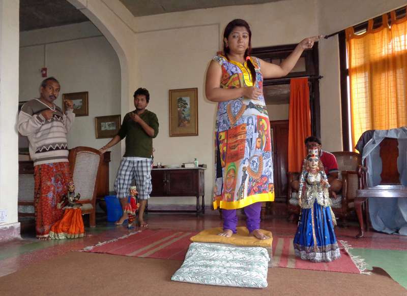 The workshop is open to about eight participants, preferably with a background in puppetry. Each of them will bring in their individual projects that could be developed at the workshop. The call for applications has been circulated widely. Anurupa is trying to keep a balance of new applicants along with participants from the earlier workshops. The workshop will take place over 18 days in Mussorie from 10th to 27th August 2015. Two mentors – Ranjana Pandey and Anurupa – and film documenter Shankhajeet De will be present at the workshop. The workshop will involve working with narratives in groups through discussions or artistic improvisations, working with materials through activities and working with concepts of string puppetry. These activities will stimulate the proposed projects and each project will have a mentor and Puran to guide them.