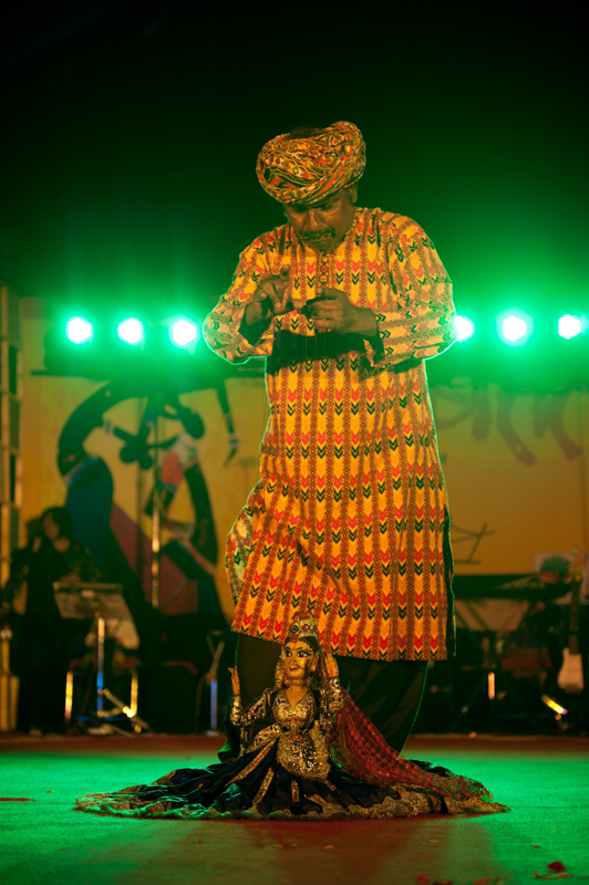 The present workshop with the Kathputli master Puran Bhatt, will take these inquiries further. Kathputli is a string puppet tradition from the Nagaur region of Rajasthan. It has been dated to the period of Raja Amar Singh Rathod during the 16th century. The stories in this form revolve around the exploits of Amar Singh, the court intrigues he was involved in, and his relationship with the Mughals. The puppeteers were probably commissioned by the king to tell these stories. The most unique aspect of the Kathputli tradition is that unlike some other traditional puppet forms in India, it has no ritual or religious connotation. The manipulation technique is also very unique. It involves a high level of technical skill, precision in puppet movement, in depth knowledge of anatomy and rhythm, dexterity and control. Having already engaged with the shadow puppet form, this master class enables Anurupa and the international puppetry association UNIMA - Union Internationale de la Marionnette – to extend their work into the string tradition.