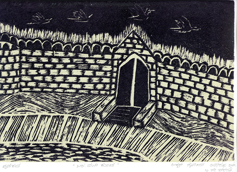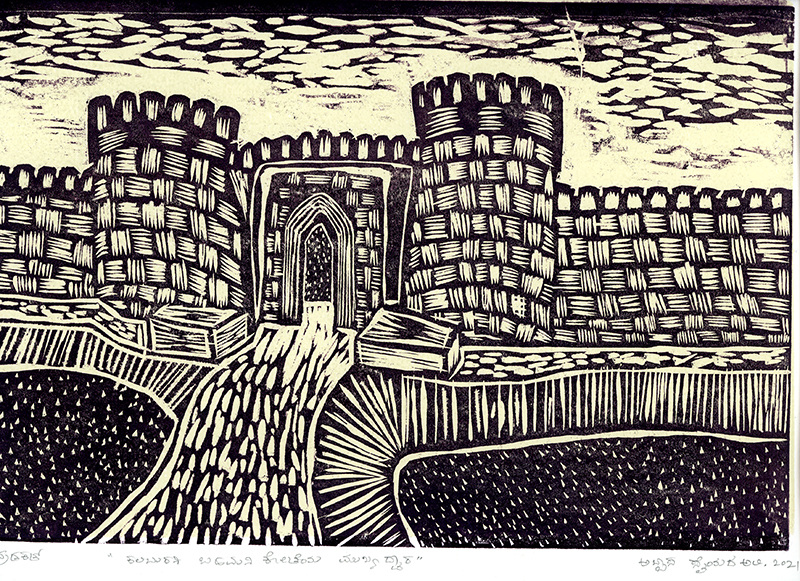 Chandrahas will also engage students in various skill development workshops for calligraphy, painting, drawing, mural making, storytelling, illustration and documenting the local social and cultural life. The project will be implemented in multiple stages with Chandrahas working with the children once or twice each week. Students will also be involved in workshops on creative writing on the history of the Bahmani Sultanate. Some of the outdoor activities will involve visiting monuments, museums, markets, parks and streets in their own region to interact with people and observe life. Once such information is collected, they will transform that to create individual narratives with 30 different woodcut prints which will finally result in 30 Art works. For some of the workshops, Chandrahas will invite professional resource persons too. The outcome of this project will be a compilation of art works by students in the form of an art book.