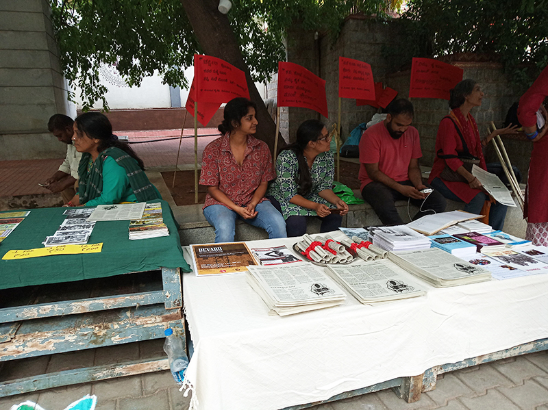 Ekta with help from Maraa will also conduct other activities like football matches, poster and pamphlets exhibitions etc. The works produced under this project will be documented and published on the Bevaru Social Media Pages (Facebook, Twitter and Instagram) and will be published under the Creative Commons License on a simple website for Bevaru. All the activities will be hosted in public spaces – parks, labour colonies, markets, bus stops, and public spaces like Samsa open air auditorium and Venkatappa Art Gallery.