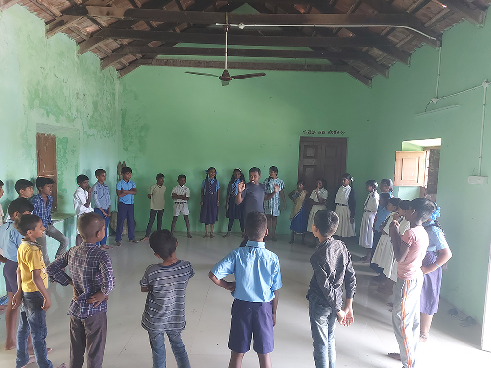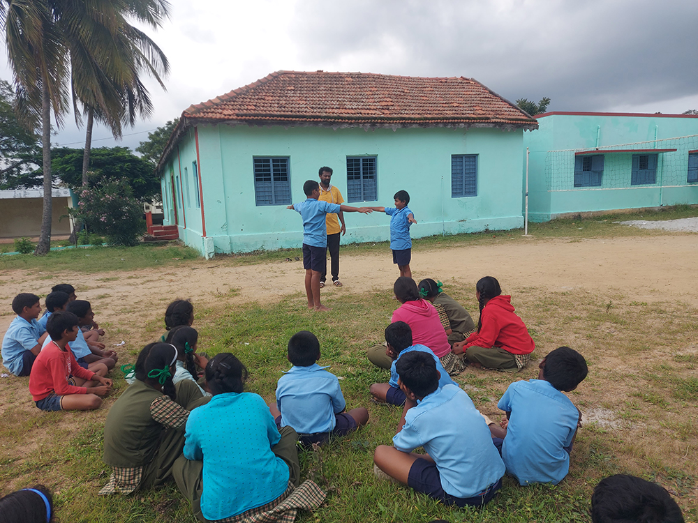 In the next phase of the project, Girisha will invite local folk artists in the region to engage students with the stories about the folk ritualistic practices and art, as well as learn Kolata dance form which is largely practiced here. Since Girisha is a professional Kalaripayattu artist, he will also engage students with this art form and teach them some basic movements of Kalaripayattu. All these activities will culminate into a performance at the end of the project.