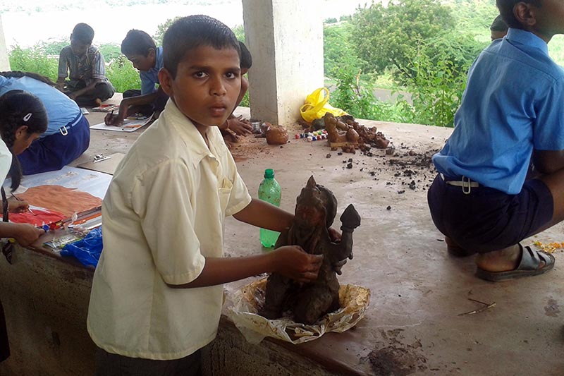 Gundappa Goudgolu, a teacher from the Government High School Halliked, Humnabad, Bidar District was very effective in building a local artistic resource pool in 2011 during the regional conference conducted in Bidar. As one of the most appreciated arts teachers of the region, Gundappa’s project builds a visual arts appreciation programme amongst his secondary school students. His project is highly influenced by the Diploma and Bachelors in visual arts programme that has dominated the Bidar-Gulbarga region. He has proposed to use resources and specialists from Gulbarga College of Fine Arts to interact with students on a regular basis. The endeavour will be to facilitate students to enrich their visual sensibilities, which in turn would help them improve their concentration and build a new vocabulary for expression. He plans to keep the programme open to students from other schools as well.