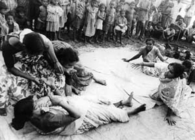 JSK and the organizations with which it collaborated on this project, all have a history of using theatre as an integral part of their efforts to improve conditions of life in hundreds of villages spread over several districts of West Bengal. Outside resource people, interested in theatre in all its manifestations, were invited to these workshops. The documentation to emerge from the project includes a film on ‘spontaneous’ or ‘shatosphurto’ theatre, which is a fairly detailed record of the group’s work.