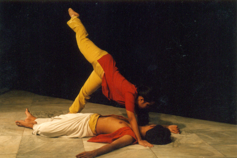 Sharing their approaches to training, preparation, improvisation and composition, and their knowledge of various dance styles, each will strive to assist the others to achieve a deeper understanding of their own search. The interaction with the music composer, Rajivan, and the sculptor, Anita Bhattacharya, is also conceived as a two-way process. They will create music and images with the aim of stimulating as well as responding to dance improvisations. The sculptor is also expected to help in the shaping of the narrative structure and design for the dance productions.