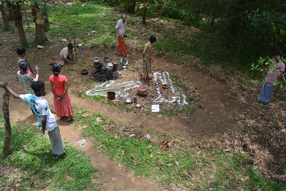 In the current project, titled Ottamuri Veedu (a single room house, in Malayalam) John and his team will engage with the farming community more profoundly on specific aspects and places of knowledge and food. Here, knowledge is not brought in from outside but comes from the lived experiences of the community. For instance, John says, ‘they do not speak of calcium intake as knowledge, but with the culture, the knowledge finds its body. It is also embedded in their perception of taste, health, and a way to connect the land and community . . . at the same time, this knowledge has political and geographical significance.’ In this project, the aim is to try to understand how art can be embedded in its context; in other words, how closely bound the word and meaning are. The focus is not on the artist or the art. But instead, the artist, the arts, and the community's interests all work into each other.