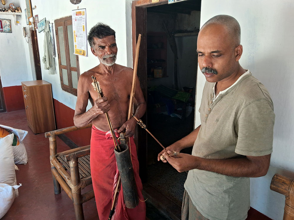 This artistic exploration involves engaged conversations and walking through the fields with elders and seed keepers of the tribal communities around Wayanad. There will be three workshops with the elders and youth of the Paniya community. These workshops will attempt to bring together a sharing of food, storytelling and singing, in order to find connections between the body, food, land and community. There will also be conversations around tools of labour and their relationship with the body and land.