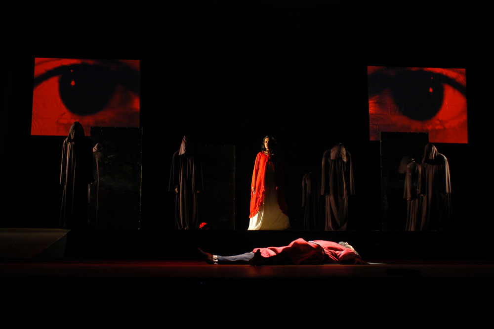 The production will not be concerned with the gradual build up of the text nor the narration of the story of the tragic hero but with creating “stage poetry” to express the deep desires and thoughts on the plight of human existence explored in the original text. It will not deliver on the moral of Macbeth’s story, but construct the equivalent of a ritual for modern theatre to express the root of madness and abject thoughts that underlie the play. Beyond the dampness of the skin, Macbeth on stage intends to provoke the spectators’ deep emotions.