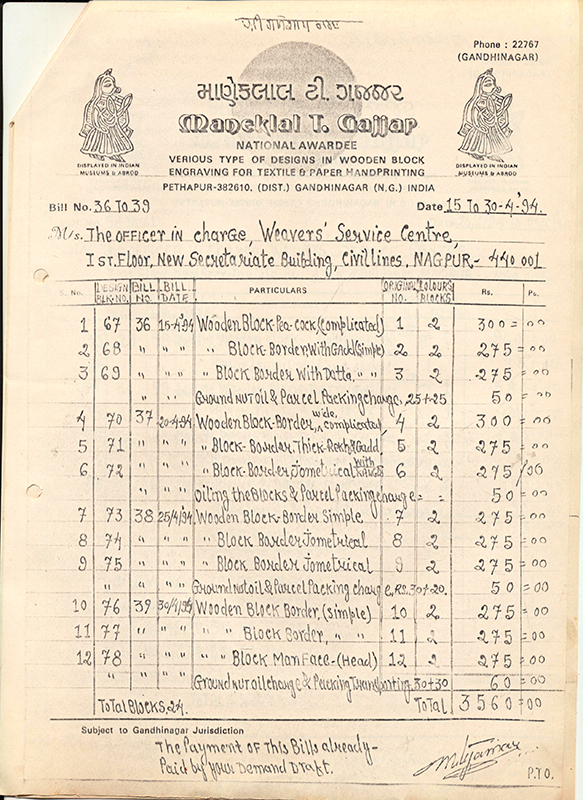 Maneklal Gajjar was a conscientious recordkeeper. He has left behind a rich archive of prints of his designs, correspondence with clients, letters from fellow craftspersons, financial records, photographs, tools and signboards of his workshop. This archive is indicative of a self-conscious, self-reflexive personality who seamlessly transcended practices and modes of knowledge while being rooted within his traditional hereditary craft. The principal focus of this project will be this archive, complemented by interviews with his family members, his associates from the crafts community in Pethapur, clients, and scholars who interacted with him during his lifetime.