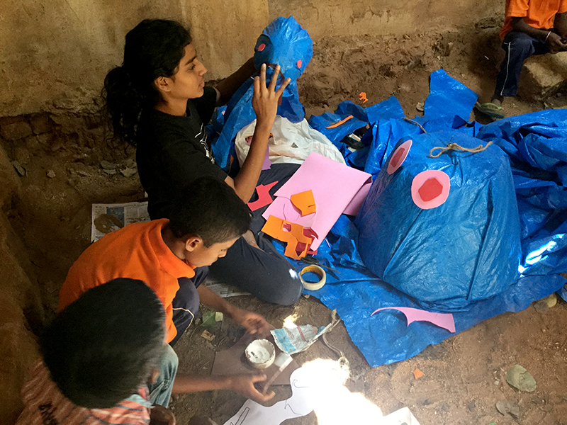Meeta is planning to enable this process through an engagement which is known as Discovering through Playing and Playing to Discover. This is an exploratory process with three components which she has planned, keeping in mind the school space, the home and the neighbourhood. In the form of narratives and stories she hopes to develop smaller games within the classroom and school premises along with children using paper, bamboo, fabric and other found material in the environment. She will also involve experts like visual and theatre artists to engage children in storytelling and other activities. Through this process she wants to develop a larger game that can be played in the Kalyani. She hopes that this game will become part of their culture in understanding the infinitely intricate relationship of water and life. The goal is for a game to emerge organically from this collaboration. She wishes the community to take ownership of the game and change it as they wish including the making and use of props as well as coming up with songs and performances around it.