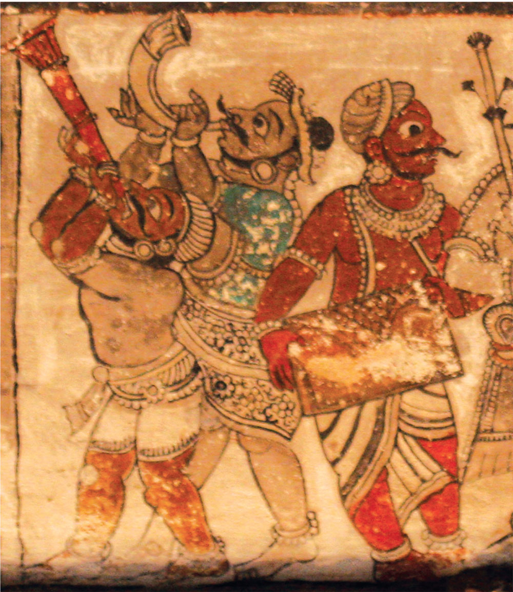 The Chengam murals are a compact presentation of the Ramayana, on a square ceiling (mukha mantapa) of 30’ x 30’. Documenting this compact mural will allow for a focused and more detailed documentation and archival process. Bhaskar will also undertake a reconstruction and replication process with Sri. Ramachandriah, a Kalamkari artist from Kalahasti, and an Andhra State awardee and record-holder for the world’s largest Kalamkari ever produced. Bhaskar and Ramachandriah have worked together extensively in the past. Kalamkari tapestries, according to Bhaskar, are the best archival medium for murals as the cloth can survive for centuries. Bhaskar is confident of Ramachandriah’s intuitive grasp of how a missing line is to be filled, his awareness of the ‘lakshanas’, his sense of colour, and his unusual comfort in handling large pieces will ensure that one of the key objectives of this project (to create an actual size canopy of the ceiling piece at Chengam) will be achieved. This unique Kalamkari replication of the mural will make an immovable wall durable, potentially creating a travelling exhibit. The process of work will return heritage art to the artist, opening up an alternative channel for conservation.