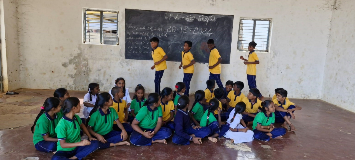 Another aspect of the project is to engage them with Jade Kolata, a folk-dance form which is soon fading from the cultural life in this region. Students will perform these translated Telugu folk songs in a Jade Kolata format in the school premise. Students will be introduced to poetry compositions of Gattahalli Anjanappa, Minakannagurki Kondarya, and Bhimasena Betta’s Nagarya who are the local poets from the region. They will also improvise and write small poems by adapting their style of seamlessly shifting from Kannada to Telugu while speaking with their classmates at the school. This will be captured and observed throughout this project with the help all the teachers, villagers and parents who will be actively involved in this project. At the end of the project, all the activities will culminate into a performance of Jade Kolata, and a publication of all their findings and writings.