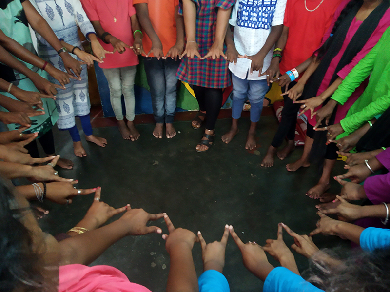 Given the growing need to find safe spaces for expressions among the children, the Creative Arts Expression programme facilitated by Pallavi, started in early 2018 to address the immediate need to offer a more in-depth intervention. The programme is specifically designed for adolescent girls and boys from the community between the ages of 11 and 15 years. A part of the programme titled The Yellow Brick Road uses art-forms such as drama, visual arts, movement, storytelling and music therapeutically and as psycho-socio interventions to address issues experienced by the adolescent children. The programme uses the arts as a language to explore, learn, make sense of as well as express and witness each other’s responses in the hope of helping the child find better coping mechanisms. The sessions are client-led where, for two days in a week, the library turns into a non-confrontational and non-judgemental therapeutic space of play and wonder.