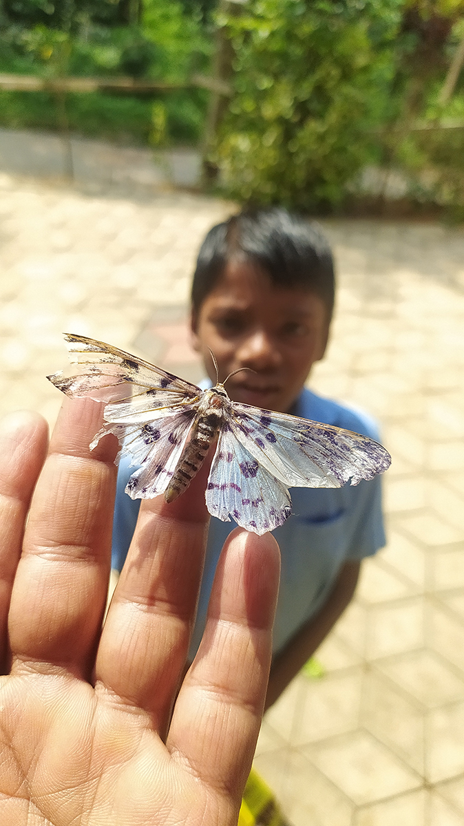 Engaging with the world of insects is an exciting and innovative aspect of this project. A unique collaboration between a teacher and students, it brings scientific and creative interests together in visualising insects from around the school. This collaboration provides a model for mutually beneficial science/art explorations in related fields. In this connection, children will also be introduced to insects by visiting the insect museum at Tejaswi Foundation in Kottigehara, near Mudigere.
