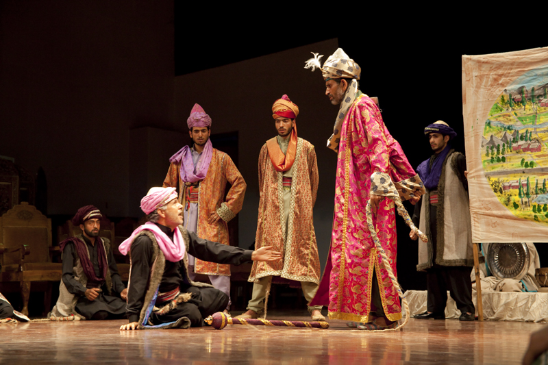 Prayog, under the stewardship of eminent theatre personality M.K. Raina, is a thirty year old experimental theatre group based out of New Delhi. The impulse for the present project originated at an intensive 35-day workshop conducted in 2007 when a large number of young men were initiated in the almost forgotten theatre art of Bhand Pather.