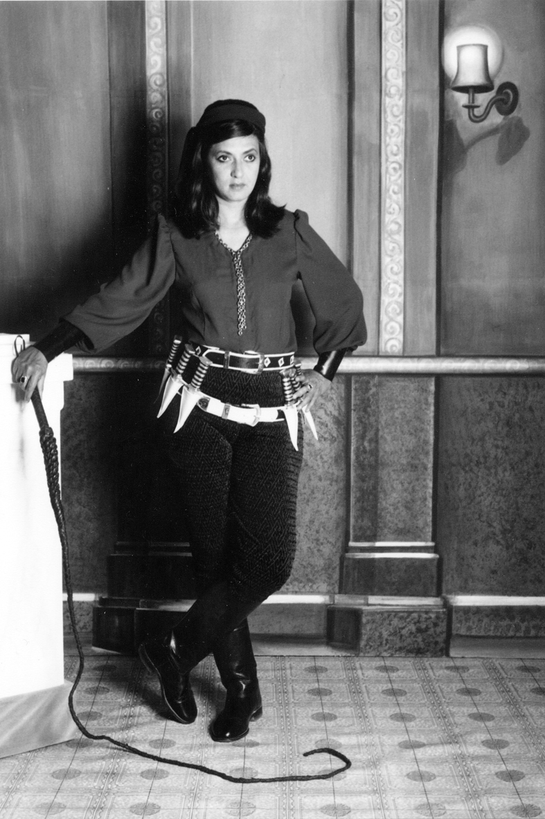 They plan to test and try out a variety of darkroom techniques. They will also collaborate with a range of technicians including specialists in the fast disappearing technique of hand tinting black and white photographs, computer-savvy graphic designers who will help them explore the possibilities of photomontage. These newly composed photomontages will then be given to commercial lithographers to be developed into traditional film posters. While the two will work with new-age technology to make crisp, contemporary images, they will also work towards creating images that are deliberately archaic, damaged and old. This collaboration will produce a variety of materials that can be exhibited, displayed and disseminated in different ways. These would include a set of b&w and hand-tinted photographs, posters, postcards and a cheaply priced flipbook with a small text behind each picture. Claire and Pushpamala will also consider the possibility of using some of the tableaux as sets for live performances in a gallery, and the projection of slides onto the walls of a gallery as an installation perhaps, or on a public building at night as a site-specific work. They might also use the photographs in a video installation.
