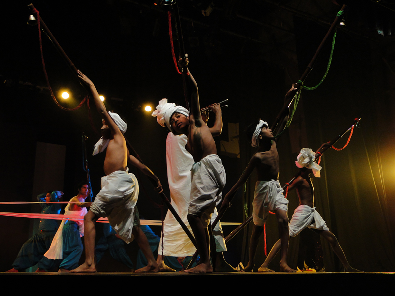 The group’s style of presentation dispenses with stage sets, relying instead on human bodies to create space on stage. Using minimum stage materials will enable the group to travel with the production and do many more shows. Rajkumar expects to premier SKSG in May 2010.
