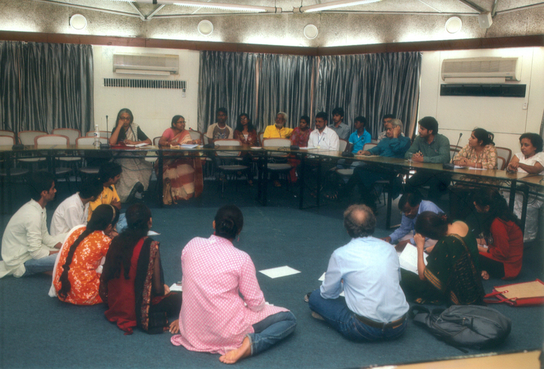 The three-day conference centred on a different theme each day. The first day addressed the social and cultural conditions that have influenced the practices of TYA in different contexts in India. Attention was given to investigating how TYA is produced and received compared to other performance practices. The second day brought together educationists, teachers and performing artists to discuss their respective roles in shaping TYA. The third day of the conference gave critical attention to existing practices in playwriting for the young. Choreographers, dancers and puppeteers also participated in the discussion. The conference facilitated discussions and interaction through Paper Presentations, Workshops and Talking Circles. Two parallel Paper Presentation sessions provided the theoretical framework for the theme of the day. This was followed by two parallel participatory workshops wherein the performing artists and groups shared their experiments in performing for the young.