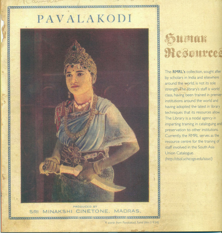 The conference will be divided into six sessions over two days and the first few sessions shall look at a broad historical framework for understanding the emergence of Tamil cinema in the 1930s. Some of the sessions will address questions surrounding the social and cultural conditions that shaped the creation of Tamil cinema and how, in turn, the new medium altered its surroundings. Later sessions will evaluate the existing historical resources—oral histories, print, audio recordings, and films—mapping how these can be used to rethink the early period of Tamil cinema. And finally, there will be a session bringing together public archivists and private collectors to discuss early Tamil film materials and their role in shaping a national agenda for preserving India’s film heritage. The film preservation officer from the state-funded National Film Archives of India will also participate in the conference, enabling much needed dialogue between the state archive and other stakeholders. The conference shall target members of the film industry, archivists, collectors, and the academic community. RMRL will also publish the papers to be presented at the conference. Along with the conference papers, the academic publication shall draw on the rich visual material of RMRL’s collection. The publication will contain a complete filmography of Tamil films from 1930 to the present, and shall serve as a basic reference for further research.