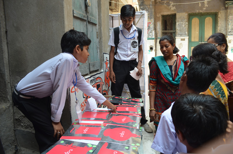 The group of artists led by Sumona and helped by the local residents and students have created various models towards creating interest, curiosity and awareness of the past glory of this neighbourhood in the last year. In the second phase in 2015 they are organising a series of workshops primarily to enable the local residents and students to take ownership of the project and drive it forward. They are planning various collective cultural acts dispersed over three sites in Chitpur, chosen in consultation with the local residents.