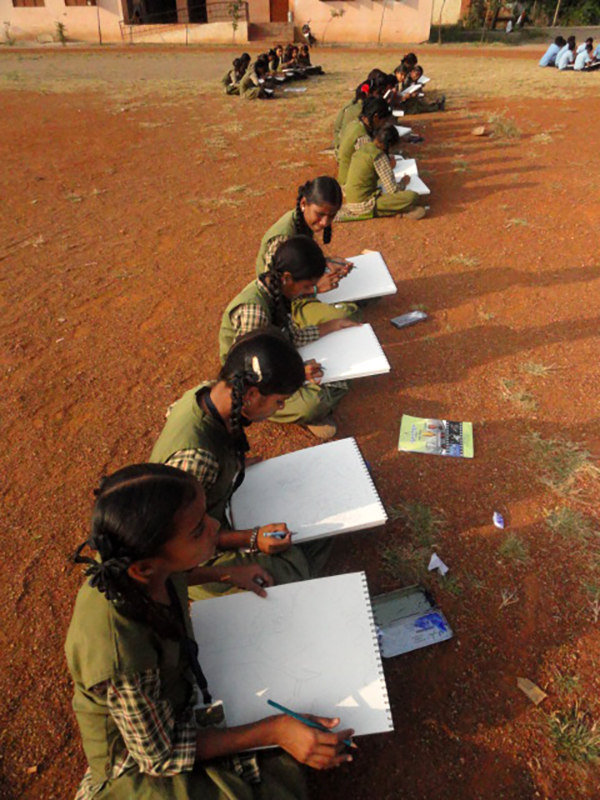 Sunitha’s project emerges from questions such as, ‘How do the children perceive a tree and its innate nature? Do they understand its importance and the environment they live in? Can they see it as a habitation of insects, birds and mammals?’