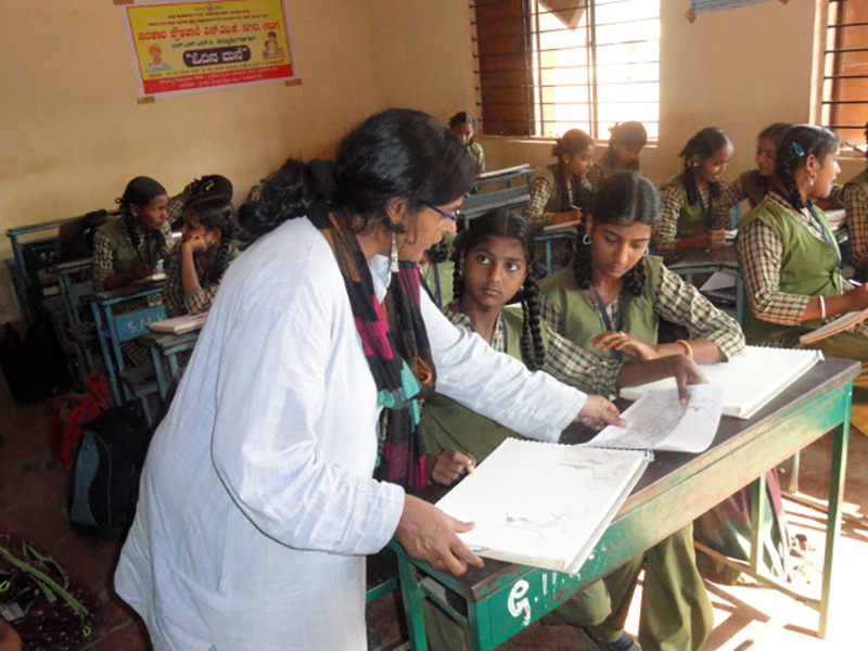 With an objective to facilitate reflections and dialogue with the children, Sunitha plans a series of arts activities on observations of animals and insects on trees. She will invite science teachers, poets, writers, and theatre artists to conduct workshops for students discussing, reading and writing about their observations. The focus will be on insects, birds and mammals, documenting their adaptation to trees and shrubs. The observations will be transformed into stories, drawing, painting, clay modelling, dramatic presentations, storytelling and illustrations. The students will use also these learnings to work on their science and mathematics curriculum.