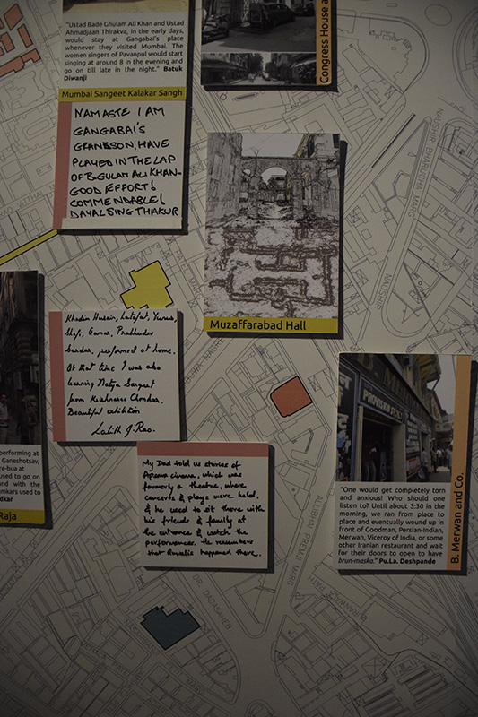 As part of this project, more audio and video material will be generated and a 9-day architecture workshop will be conducted for students of architecture. The workshop will look at understanding urban spaces in relation to cultural practices through a focus on architecture. Following the workshop, students will engage in documentation and mapping of specific areas. This musical cartography will culminate in an exhibition that will tell the story of Hindustani music in the city through video and audio installations, maps, photographs and performances. The exhibition, curated by Tejaswini, will be held in June 2015 at Studio X. Strategically located within close proximity of Mumbai’s historical musical spaces, Studio X offers the collaborators more opportunities to explore their collaborations. The trio are also looking at organising a few performances with young musicians during the exhibition. The other collaborators on this project are musician Rutuja Lad, exhibition designer Farzan Dalal and architect Sonal Sundararajan.