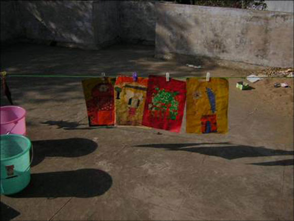 Ms Thozhur will take workshops with live women regularly for l8 months. She will design and conduct l0 two-week sessions during the term of the grant. While the workshops will explore notions of colour, composition, and form, using both conventional media and found materials, Ms Thozhur intends to focus on enabling the women to produce narrative works that record their own stories and help them come to terms with their traumatic past. She will work closely with Himmat’s ‘master tailor’, and on occasion call on external resource persons for technical help and advice. The drawings, sketches, and assemblage that the women create would be used as cartoons that can be traced on to fabric for embroidery or as posters that will speak of issues they feel strongly about. With Ms Wahi, she will also digitalise the women’s works and attempt to use the digital media for further explorations in creativity.