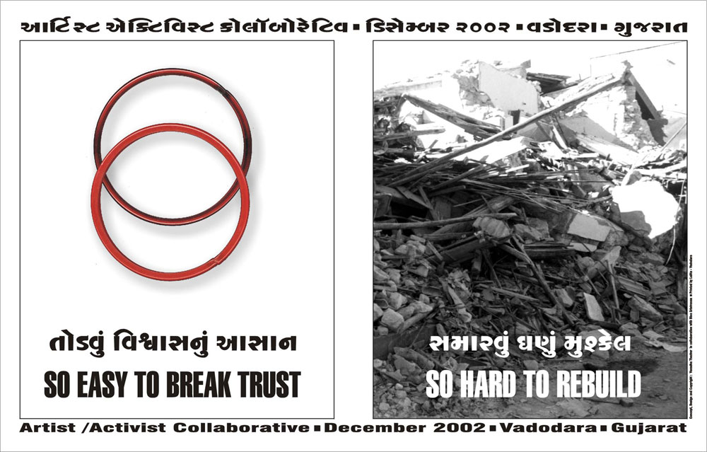 The collaborators will begin by studying the existing documentation on the Gujarat riots. While Ms. Srinivasan will source and research the documents, Ms Thozhur will explore ways of transforming the information contained in the documents into creative material that could be circulated immediately. The team will also travel together and interact extensively with organisations/individuals with whom Ms Srinivasan has been in touch with over the years. They envisage the project developing in response to changing needs, and while their current focus is on communalism, they feel that the project “need not confine itself to the riots, but could flow with events, and with our own capacity to be in a position to comment on the fallout of such events.”