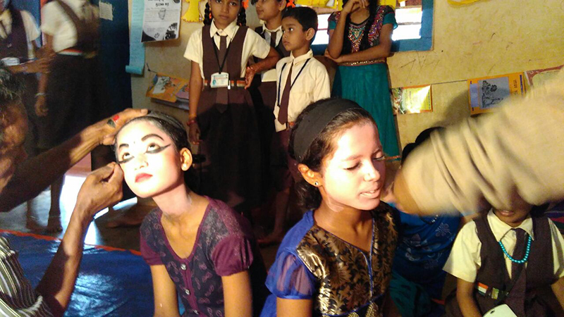 With this grant he has planned on using local Yakshagana resources to run a series of workshops on voice modulation and holding discussions on the content of some of the popular performances in the region that are viewed by his students. Since most of these performances are dual character based and highly dialogic in nature, the essence of the performance is derived from oration. Given this very nature of the form, he would work with the students to build their oratory skills and help them overcome their insecurities in everyday communications. He plans on a nine month long engagement using local folk resources to work with his students and eventually prepare a final production for showcase in their school and at the cluster level.