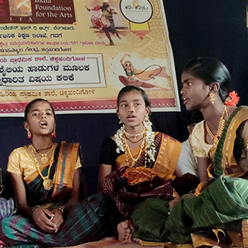 For the implementation of a Foundation Project by IFA that engages fifth grade students of the Government Higher Primary School in Chikkahandigol village, Gadag district with the local folk art forms of Sobane Pada, Gee Gee Pada, Lavani, Kolatada Pada, Beesuva Kallina Pada, Hanti Hadu and Holi Hadu, which are rapidly disappearing from the cultural life of the region. The students will train in these forms through workshops conducted by community singers, and apply it to the texts of their curriculum. The outcome of the project will be a performance in the presence of school staff and community members, and a digital publication. The Project Coordinator’s deliverables to IFA with the final report will include photographs, the digital publication and video documentation of the entire project. Project funds will pay for professional fees, performance, workshop, honorarium, travel, and documentation.