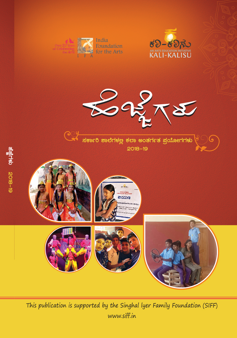 Hejjegalu ('Footsteps' in Kannada) is an annual publication reflecting on the significant impact and reach of the Kali Kalisu programme of India Foundation for the Arts (IFA). It is a noteworthy overview of this programme featuring Grantees/Project Coordinators and their projects and the larger story of arts education in India. The various editions will serve a vital resource for key persons and organisations in the field of Education in Karnataka – teachers, art educators, and policy makers. Browse through Hejjegalu and get a sense of Kali Kalisu projects, accompanied with rich illustrations!