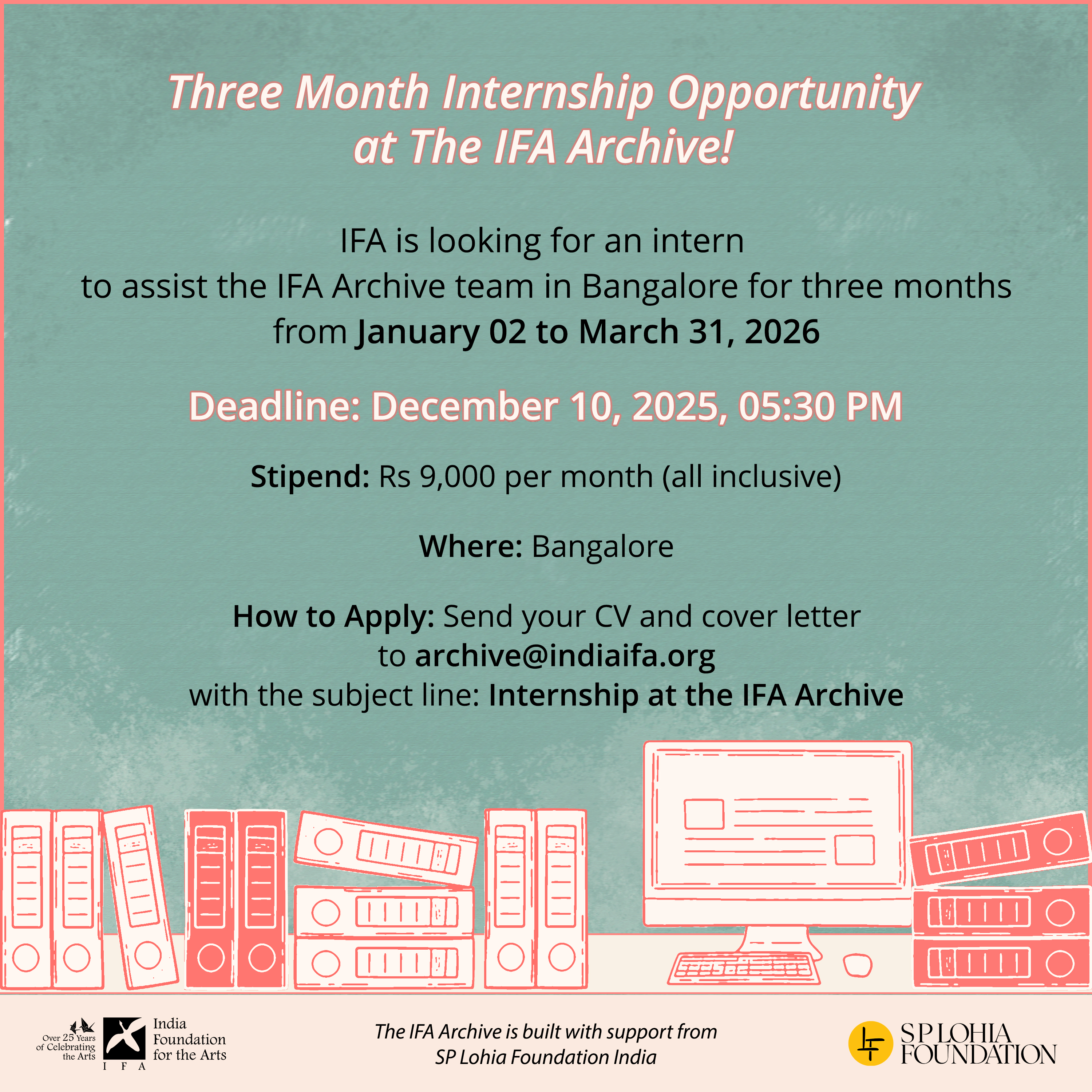 India Foundation for the Arts (IFA) is inviting applications for an intern to assist the IFA Archive team in Bangalore from January 02 to March 31, 2026. This is a paid internship opportunity.